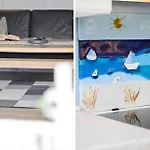 An electric kettle, a fridge, and a dishwasher are provided in an equipped kitchenette for preparing meals.